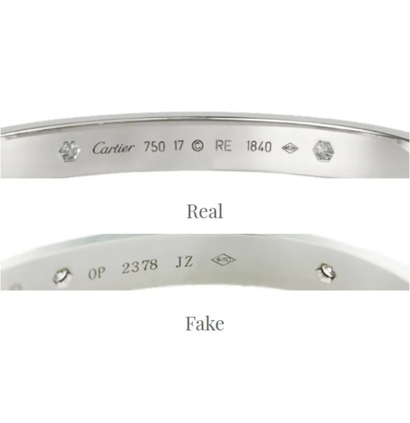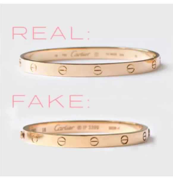- Mỗi thiết kế của Cartier đều có tỷ lệ và cấu trúc đặc trưng. Ví dụ, vòng LOVE chính hãng có dáng oval để ôm sát cổ tay, trong khi nhiều mẫu fake lại có dáng tròn hoàn toàn.