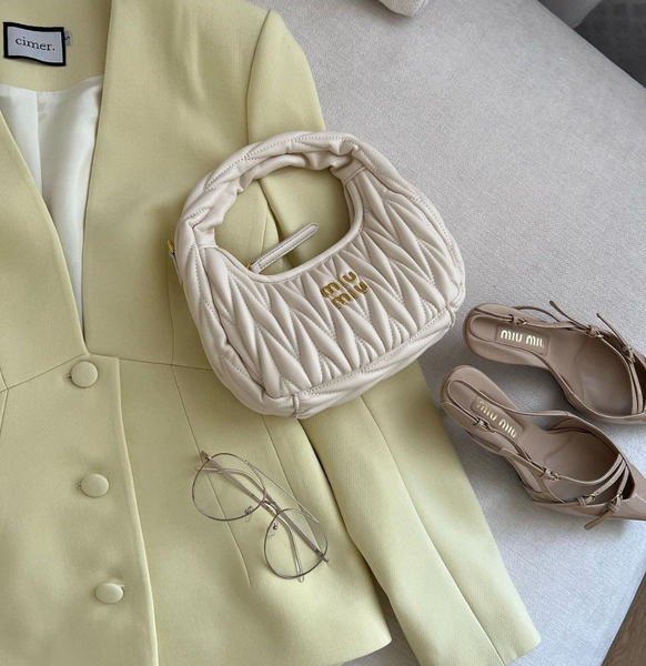 Miu Miu Wander Hobo màu trắng sữa mang lại sự nhẹ nhàng, tinh khiết và rất dễ dùng. Form túi mềm mại, chất liệu da nappa matelassé đặc trưng giúp chiếc túi vừa mang tính thời trang, vừa phù hợp cho sử dụng hằng ngày – đặc biệt trong những ngày xuân nắng nhẹ.